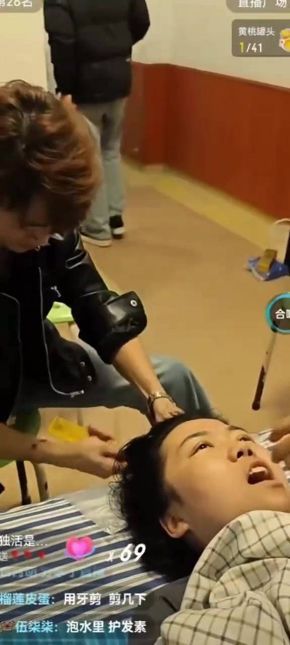 11日下午,张家界荒野求生赛中因“瘦脱相”引发全网心疼的“冷美人”杨朝芹,终于在医院病床上录视频报平安了。视频里的她脸颊重新有了血色,比起比赛时嶙峋的锁骨,现在连手腕都圆润了不少,对着镜头轻声说“感谢你们一直为我担心”时,弹幕瞬间被“平安就好”刷屏。谁能想到这个在山里靠野果充饥、冻得裹塑料布睡觉的姑娘,退赛后首次露面就凭一场病房直播冲上热搜——十多万人蹲守看她洗头,三瓶护发素都梳不开的打结长发,让打工人集体破防:“这哪是洗头,分明是我们被生活薅秃的样子啊!”